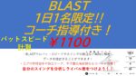 - 1日1人限定ブラスト!指導付き!1日1人限定でブラスト測定、指導します! 現在の自分のスイングスピードやクセをデータで出しそれをもとに練習しよう!!