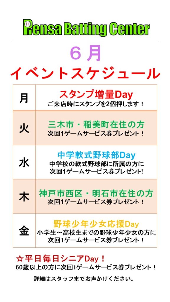 6月の平日は以下のイベントを実施しております!