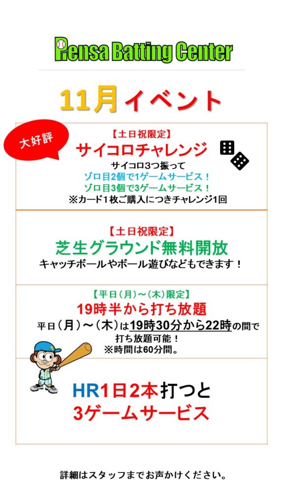 11月は下記のイベントを実施しております!